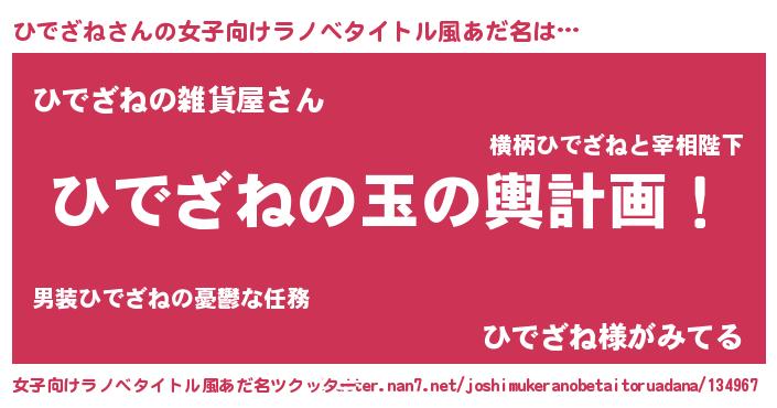 | 男性向けラノベタイトル風あだ名 | 『ひでざね~年齢イコール彼女いない歴の魔法使い~』 |