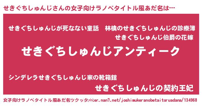 | 肩書あだ名 | 『せきぐちしゅんじ総統』 |