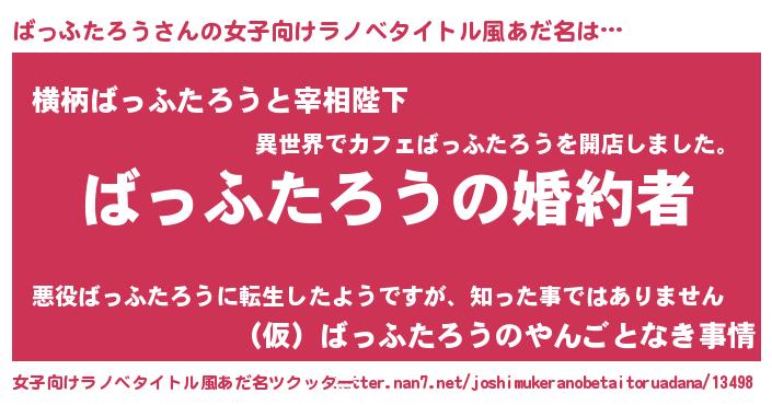 | 意味不明あだ名 | 『ばっふたろうフォーエバー』 |