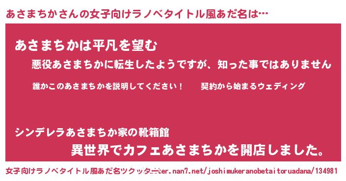 | 胡散臭い通販商品みたいなあだ名 | 『億万長者になれる霊験あらたかなお札…その名も「あさまちか」』 |