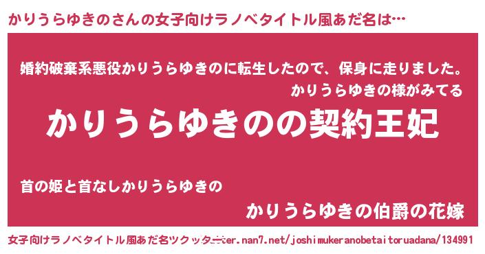 | 胡散臭い通販商品みたいなあだ名 | 『来世でも幸せになれる健康食品…その名も「かりうらゆきの」』 |