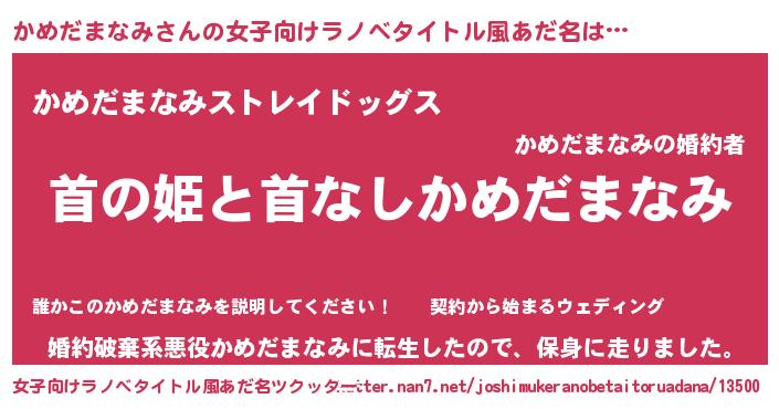 | 意味不明あだ名 | 『自称かめだまなみ』 |