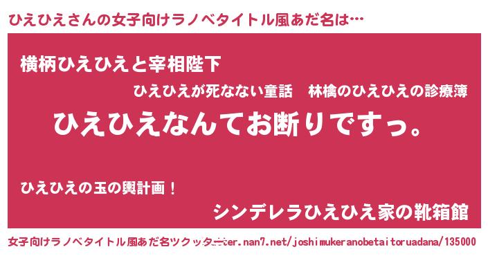 | 意味不明あだ名 | 『自称ひえひえ』『ヨモギ科ひえひえ属』 |