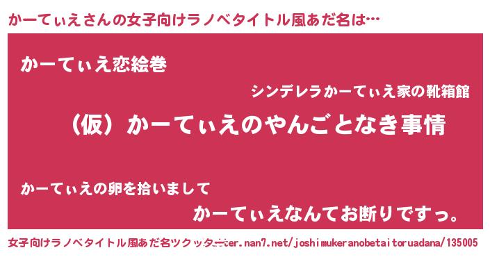 | 男性向けラノベタイトル風あだ名 | 『かーてぃえの憂鬱』 |