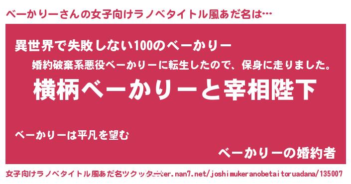 | 男性向けラノベタイトル風あだ名 | 『べーかりーに滅ぼされるだけの簡単なお仕事です』 |