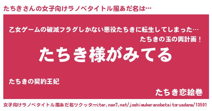 | 男性向けラノベタイトル風あだ名 | 『たちきの嫁は女の子じゃないと思った?』 |