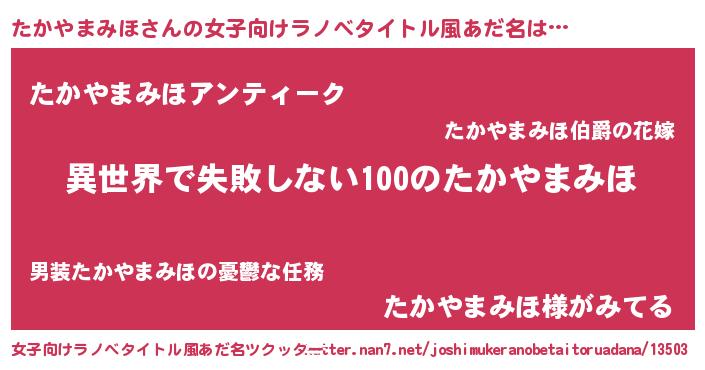| 胡散臭い通販商品みたいなあだ名 | 『絶対に幸福をもたらす水素水…その名も「たかやまみほ」』 |