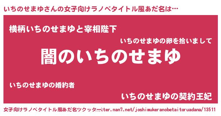 | 男性向けラノベタイトル風あだ名 | 『Re:いちのせまゆから始める異世界生活』 |