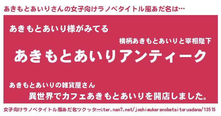 | 男性向けラノベタイトル風あだ名 | 『魔法科高校のあきもとあいり』 |