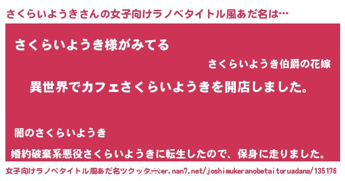 | 男性向けラノベタイトル風あだ名 | 『誰もが恐れるあのさくらいようきが、ぼくの専属メイドになるようです。』 |