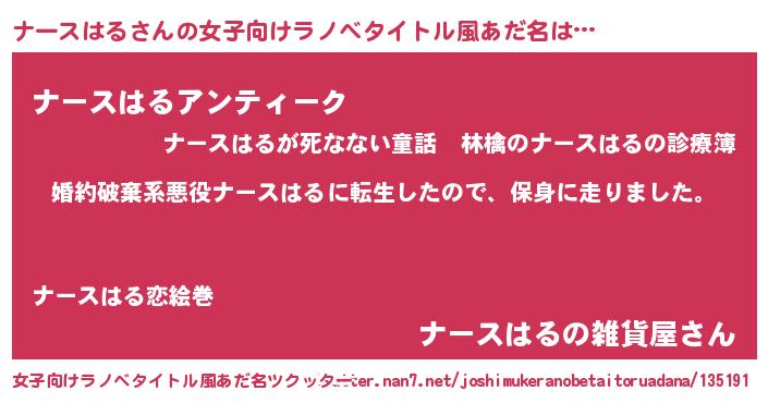 | 男性向けラノベタイトル風あだ名 | 『ナースハルスレイヤー』 |