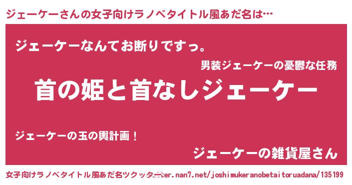 | ファンタジー風あだ名 | 『ゼジェトゥ』『エターナルジェーケーー』 |