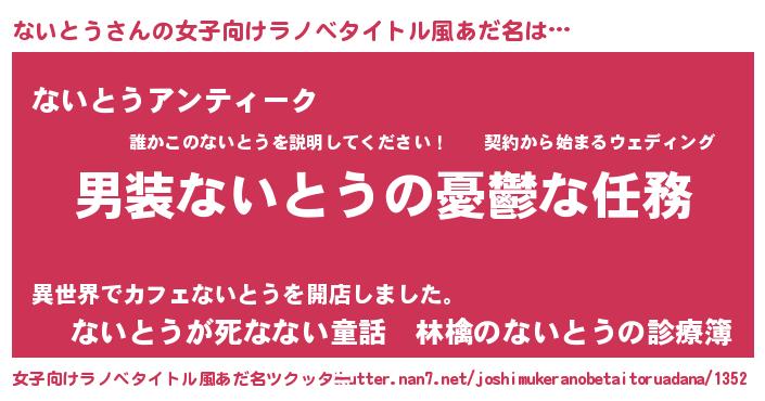 | ヘコむあだ名 | 『ないっふぃ~』『ないとう(笑)』 |