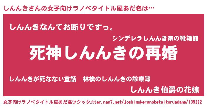 | 男性向けラノベタイトル風あだ名 | 『ノーゲーム・ノーシンンキ』 |