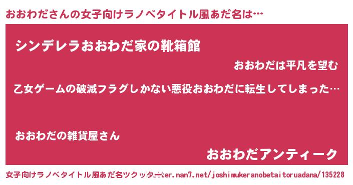 おおわださんの女子向けラノベタイトル風あだ名