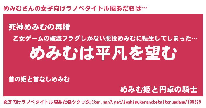 | 胡散臭い通販商品みたいなあだ名 | 『信頼と実績のサプリメント…その名も「めみむ」』 |