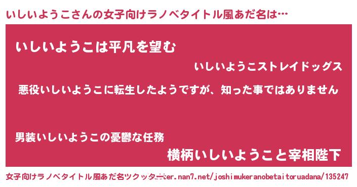 | 男性向けラノベタイトル風あだ名 | 『この素晴らしい世界にいしいようこを!』 |