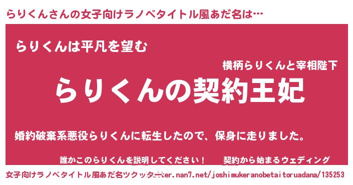 | 男性向けラノベタイトル風あだ名 | 『らりくんという概念が存在しない退屈な世界 』 |