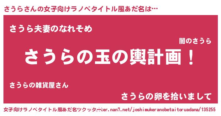 | 男性向けラノベタイトル風あだ名 | 『転生したらさうらだった件』 |