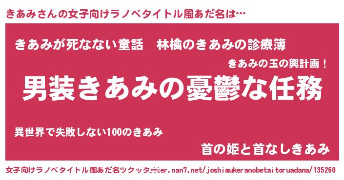 | 胡散臭い通販商品みたいなあだ名 | 『あなたにだけ特別に提供する100年もののヴィンテージワイン…その名も「きあみ」』 |