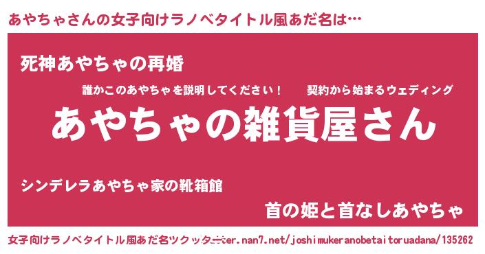| 男性向けラノベタイトル風あだ名 | 『やはりあやちゃの青春ラブコメはまちがっている 』 |