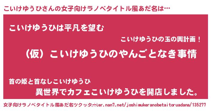 | 男性向けラノベタイトル風あだ名 | 『こいけゆうひの憂鬱』 |