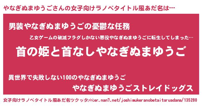 | 男性向けラノベタイトル風あだ名 | 『はたらくやなぎぬまゆうごさま!』 |