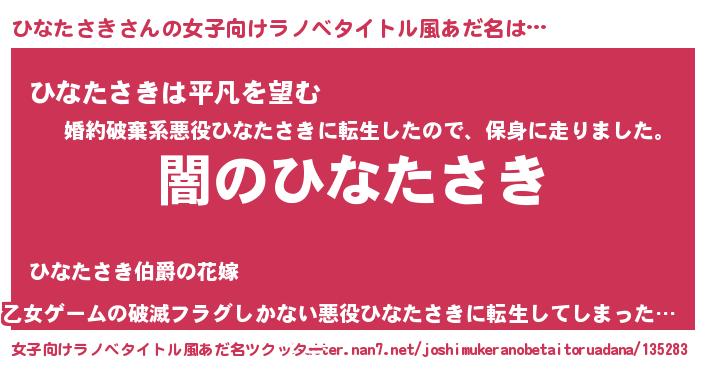 | 意味不明あだ名 | 『自称ひなたさき』 |