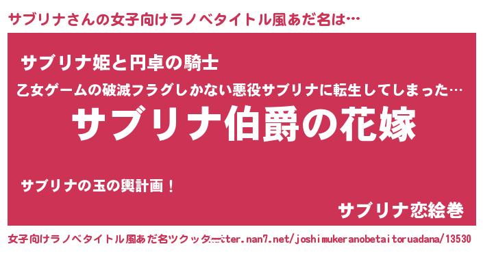 | ファンタジー風あだ名 | 『エターナルサブリナー』『サブフェル』 |