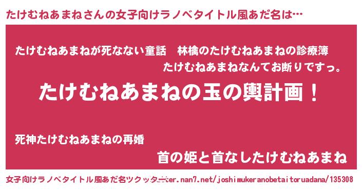 | 男性向けラノベタイトル風あだ名 | 『転生したらたけむねあまねだった件』 |