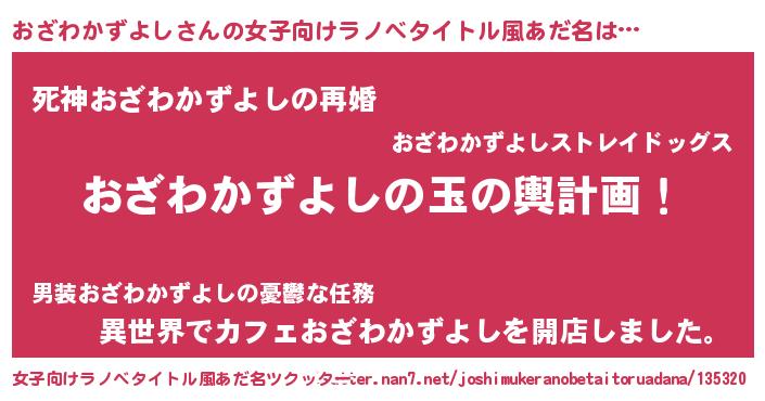 | 男性向けラノベタイトル風あだ名 | 『おざわかずよし~年齢イコール彼女いない歴の魔法使い~』 |