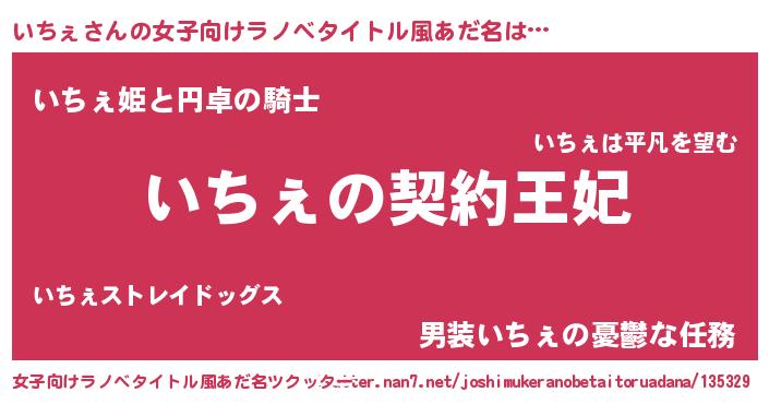 | 意味不明あだ名 | 『永久保存いちぇ』『ペロリンいちぇ』 |