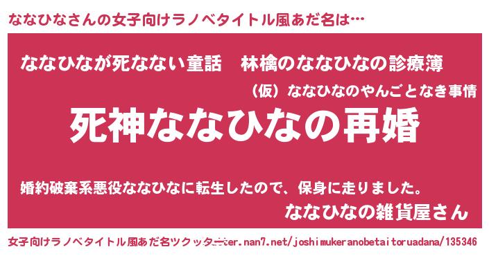 | ヒーロー風カッコイイあだ名 | 『慈愛の使者ななひな』『仮面ナナダー』 |