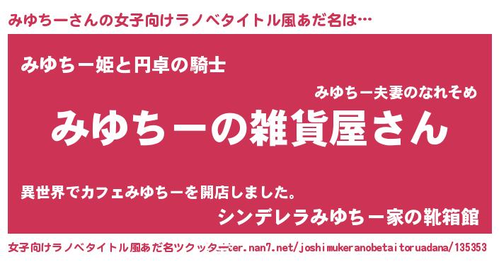 | ファンタジー風あだ名 | 『エターナルミユチーー』『ミユフェル』 |