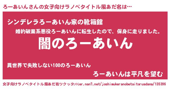 | 男性向けラノベタイトル風あだ名 | 『Re:ろーあいんから始める異世界生活』 |