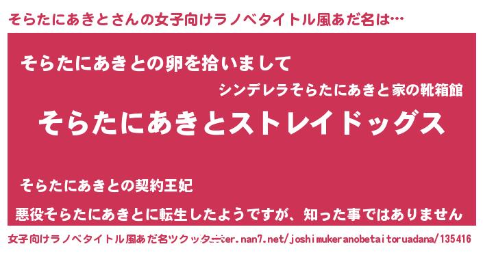 | 男性向けラノベタイトル風あだ名 | 『Re:そらたにあきとから始める異世界生活』 |