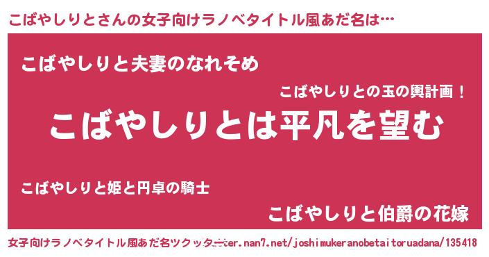 | 男性向けラノベタイトル風あだ名 | 『ダンジョンにこばやしりとを求めるのは間違っているだろうか』 |