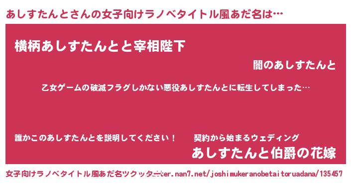 | 意味不明あだ名 | 『住所不定無職あしすたんと(98歳)』 |