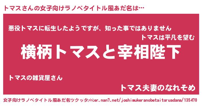 | 男性向けラノベタイトル風あだ名 | 『トマスに滅ぼされるだけの簡単なお仕事です』 |