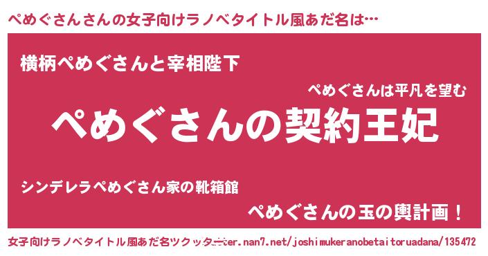| ヘコむあだ名 | 『ペめぐさん(笑)』『ペめぷりん』 |