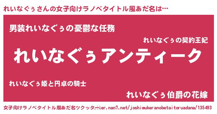 | 男性向けラノベタイトル風あだ名 | 『魔法科高校のれいなぐぅ』 |
