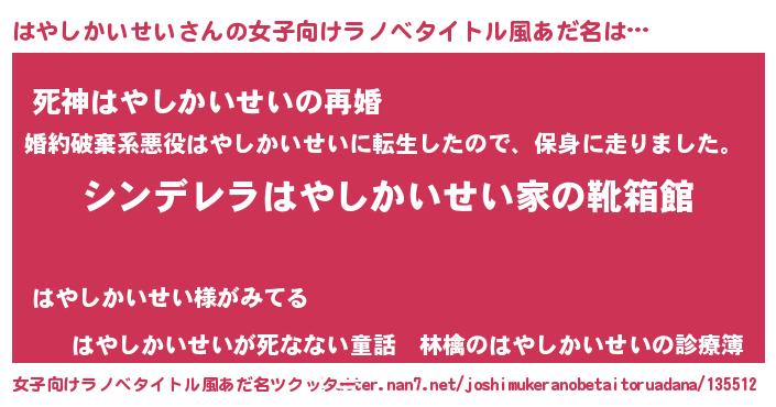 | 男性向けラノベタイトル風あだ名 | 『緋弾のハヤシカイセイ』 |