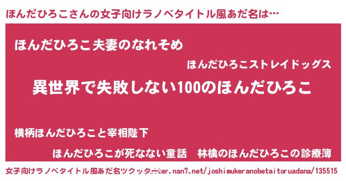 | 男性向けラノベタイトル風あだ名 | 『ほんだひろこという概念が存在しない退屈な世界 』 |