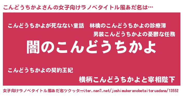 | 男性向けラノベタイトル風あだ名 | 『Re:こんどうちかよから始める異世界生活』 |