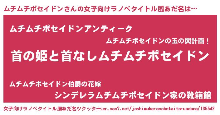 | 男性向けラノベタイトル風あだ名 | 『はたらくムチムチポセイドンさま!』 |
