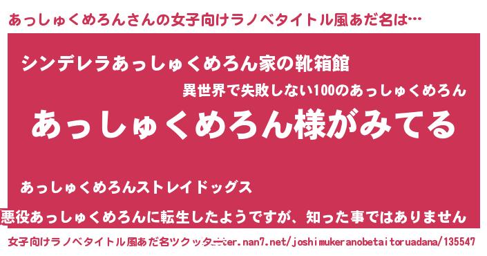 | 萌えアニメ | 主人公(あっしゅくめろん)のあだ名『 あっさん』 |