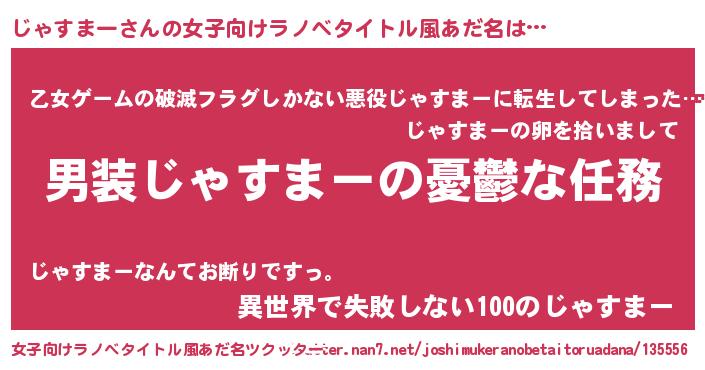 | 男性向けラノベタイトル風あだ名 | 『冴えないじゃすまーの育てかた』 |