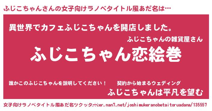 | 男性向けラノベタイトル風あだ名 | 『おまえをオタクにしてやるから、俺をふじこちゃんにしてくれ! 』 |