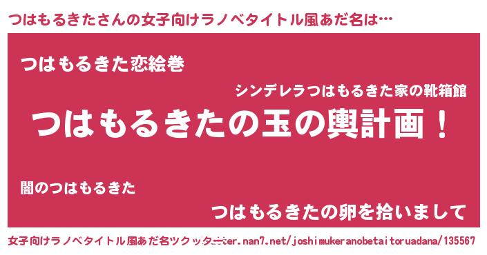 | 男性向けラノベタイトル風あだ名 | 『つはもるきた~年齢イコール彼女いない歴の魔法使い~』 |