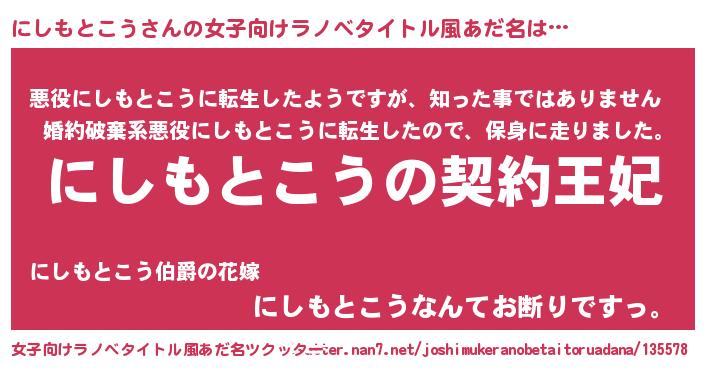 | 胡散臭い通販商品みたいなあだ名 | 『来世でも幸せになれる水素水…その名も「にしもとこう」』 |